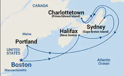 Boston – Halifax – Sydney (Cape Breton Island) – Charlottetown (Prince Edward Island) – Portland – Boston