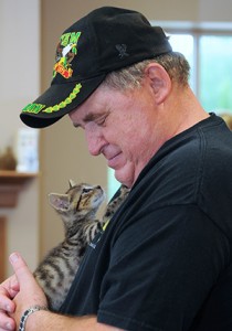 Diane Callahan of Concord spent a great portion of the recent “Coffee with the Critters” event patting a kitten, remarking that she is already the proud mother of three cats. She certainly didn’t need to be sold on the benefits of the new program.